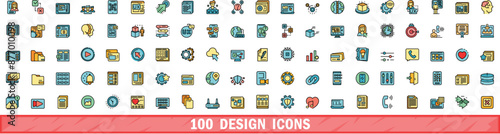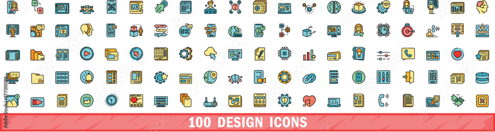 100 design icons set - color line set of design vector icons thin line color flat on whiteWall mural