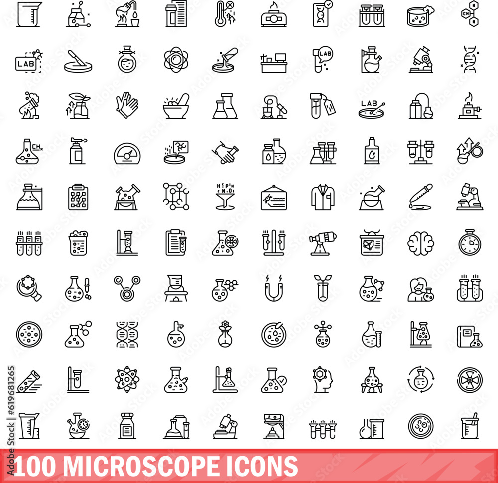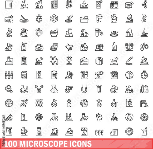 Wall mural 100 microscope icons set. outline illustration of 100 microscope icons vector set isolated on white
