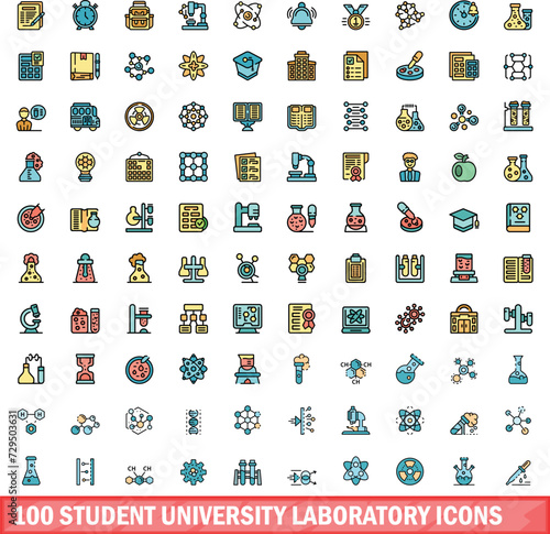 Wall mural 100 student university laboratory icons set. color line set of student university laboratory vector