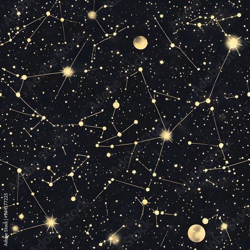 Wall mural : 105 - **generate a seamless pattern of delicate, celestial constellations in a dark, starry backgroun