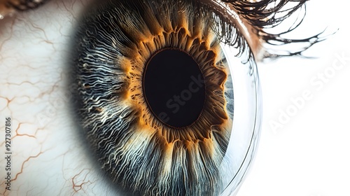 Wall mural : 12 - "a close-up image of a human eye with fine textures and sharp contrasts, isolated on a pristine
