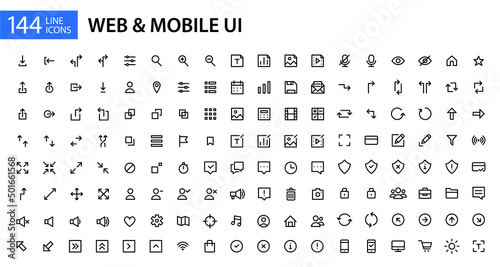 Wall mural 144 simple line art web and mobile ui icons. pixel perfect, editable stroke