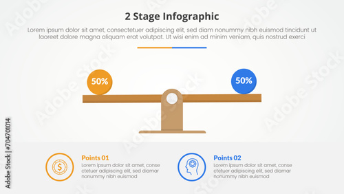 Wall mural : 2 points stage template for comparison opposite infographic concept for slide presentation with wood