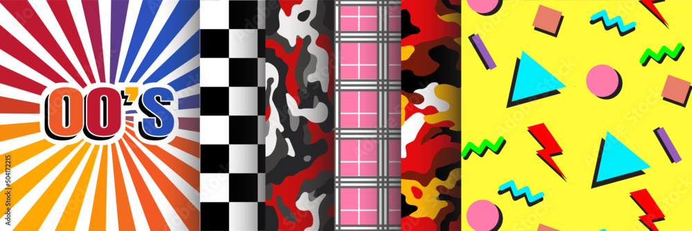 The watermark will not be included on Wall mural.: 2000's collection of seamless patterns | set of abstract vivid vector graphics in retro vintage styl