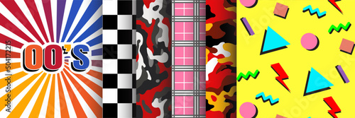 Wall mural : 2000's collection of seamless patterns | set of abstract vivid vector graphics in retro vintage styl