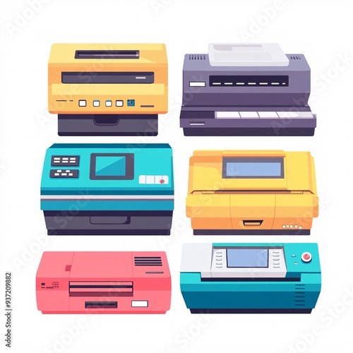The watermark will not be included on Wall mural.: 240805 196 - a simple vector icon illustration depicting the group of laser printer items at center f