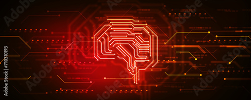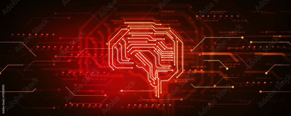 Wall mural : 2d illustration concept of thinking, background with brain, abstract artificial intelligence - techno