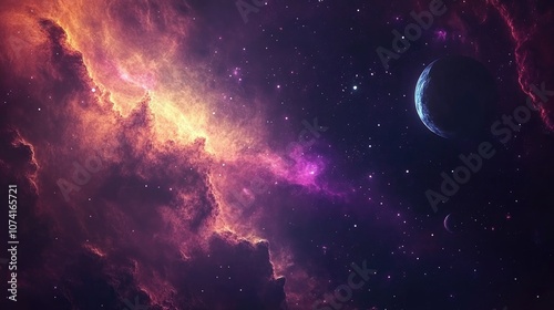 Wall mural 2d illustration with a 3d cartoon rendering in a deep space stellar background featuring a black uni - Wall murals Wall mural 2d illustration with a 3d cartoon rendering in a deep space stellar background featuring a black uni - Wall murals
