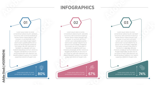 Wall mural 3 points presentation modern template infographic outline style with 3 point stage or step template