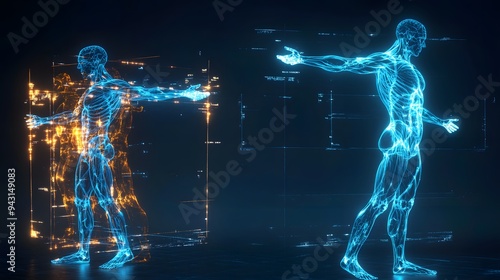 Wall mural 3. **design a dynamic hologram of a human body with an emphasis on movement and animation. the holog