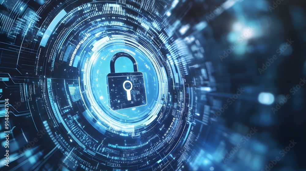 Wall mural 3. "a modern digital padlock against a dynamic blue and white background, featuring flowing binary c - Wall murals Wall mural 3. "a modern digital padlock against a dynamic blue and white background, featuring flowing binary c - Wall murals