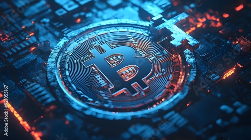 The watermark will not be included on Wall mural.: 30 - a digital lock and key with bitcoin symbols representing security