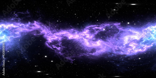 Wall mural 360 degree equirectangular projection space background with nebula and stars, environment map. hdri