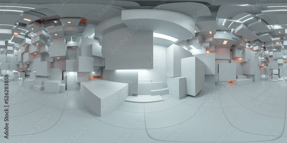 The watermark will not be included on Wall mural.: 360 degree full panorama environment map of bright white abstract cube geometric shape cube elements