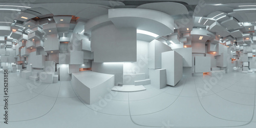 Wall mural : 360 degree full panorama environment map of bright white abstract cube geometric shape cube elements