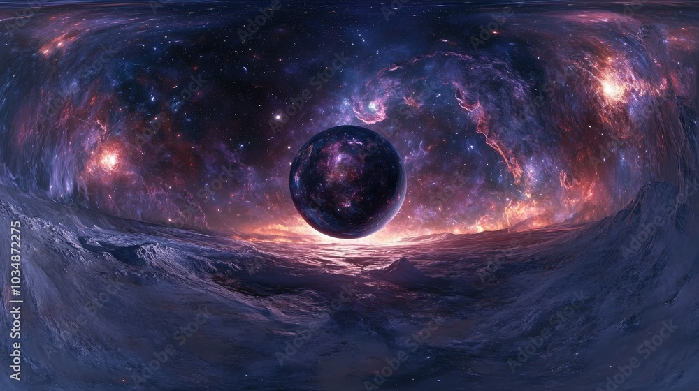 Wall mural 360 degree space background featuring a nebula and stars with a 3d cartoon rendering equirectangular - Wall murals Wall mural 360 degree space background featuring a nebula and stars with a 3d cartoon rendering equirectangular - Wall murals