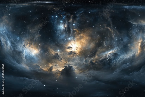 Wall mural : 360 degree space background with nebula and stars, equirectangular projection, environment map - hdri
