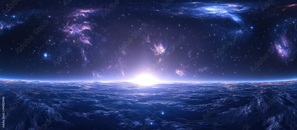 Wall mural 360 degree space background with nebula and stars featuring a 3d cartoon rendering equirectangular p - Wall murals Wall mural 360 degree space background with nebula and stars featuring a 3d cartoon rendering equirectangular p - Wall murals