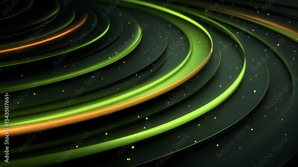 3d abstract background featuring green tech layers against a dark backdrop enhanced with glowing cirWall mural