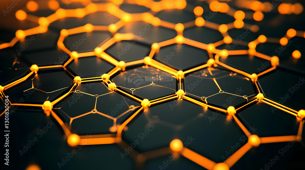 Wall mural 3d abstract background hexagon network orange glow - Wall murals Wall mural 3d abstract background hexagon network orange glow - Wall murals