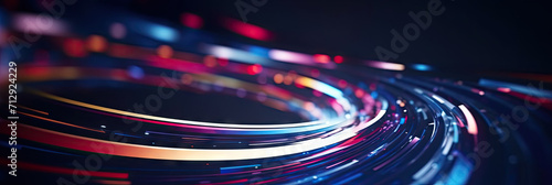 3d abstract background with space, colorful lines moving through a dark circular space,Wall mural