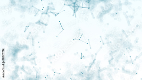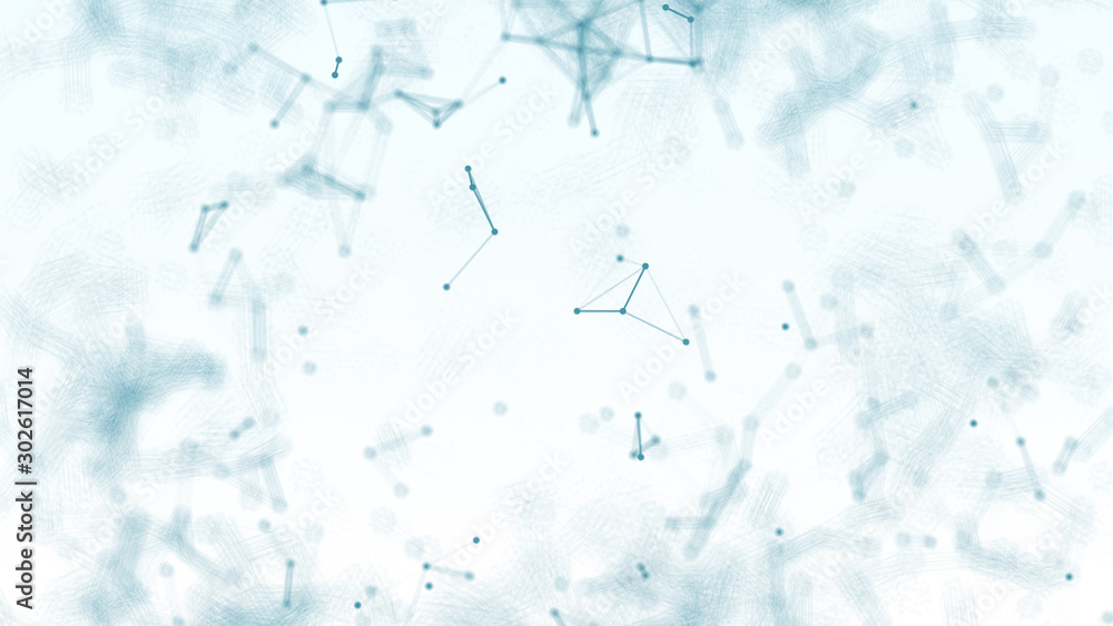 Wall mural 3d abstract blue blurred geometry wireframe network and connecting dot in space on white background.