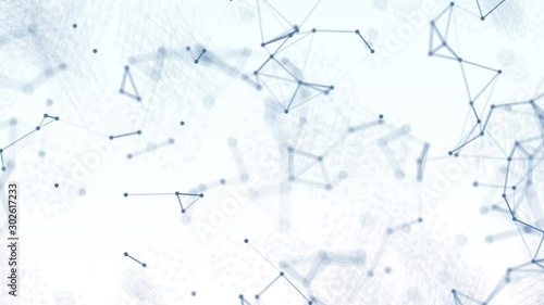 Wall mural 3d abstract blue blurred geometry wireframe network and connecting dot in space on white background.