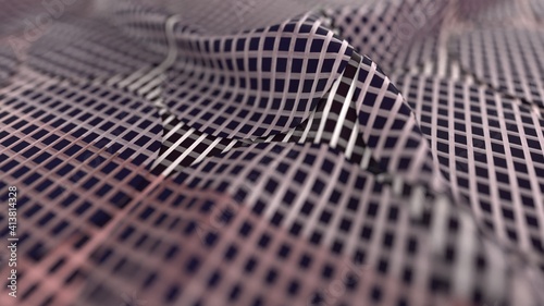 Wall mural : 3d abstract pattern backdrop render in pale rose metallic color with net metal texture