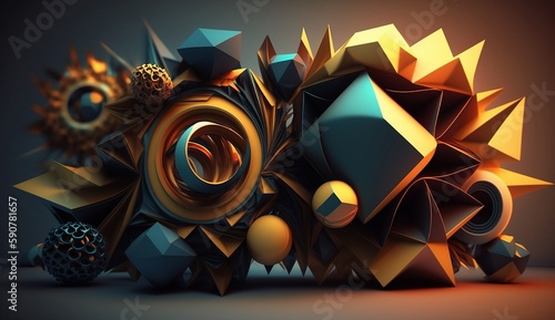 3d abstract realistic background with different shapes and colors - generative ai - business wallpaperWall mural