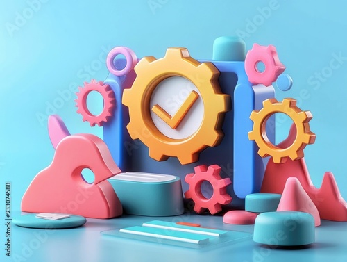 The watermark will not be included on Wall mural.: 3d abstract search engine icon with floating gears symbolizing the mechanics and algorithms behind d