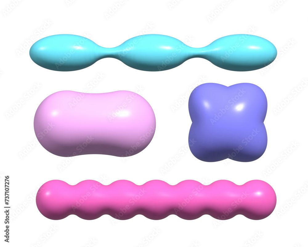 The watermark will not be included on Wall mural.: 3d abstract shapes collection - brutalist retro forms realistic design collection