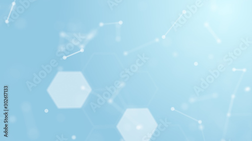 The watermark will not be included on Wall mural.: 3d abstract white geometry float into medical wireframe network and connecting dot space on blue bac