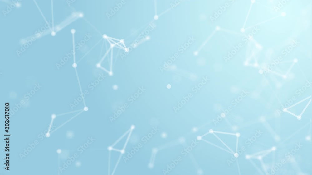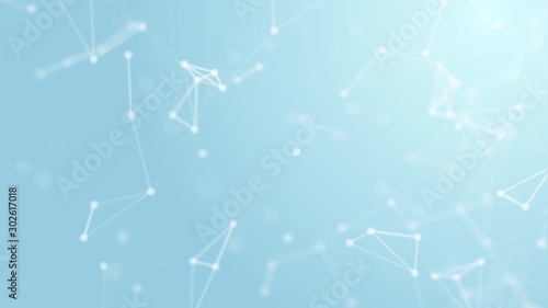 The watermark will not be included on Wall mural.: 3d abstract white geometry flying wireframe network and connecting dot space on blue background - sec