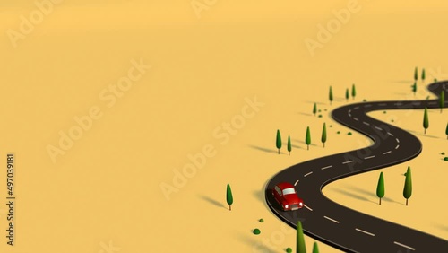 Wall mural 3d animation - animation of a running red car. it runs forever without interruption.