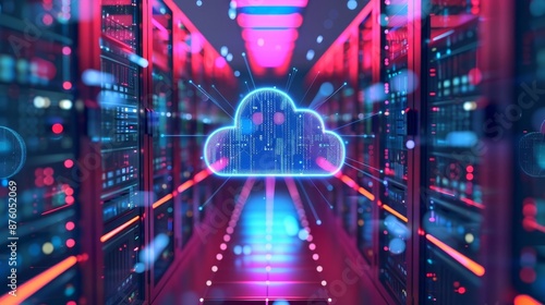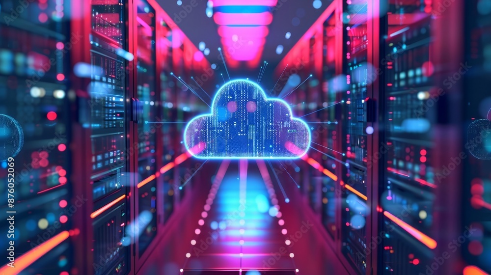 The watermark will not be included on Wall mural.: 3d animation of a digital cloud in a data center