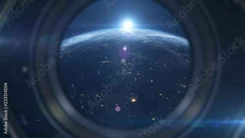 Wall mural 3d animation of a spaceship in orbit around planet earth in 4k - Wall murals Wall mural 3d animation of a spaceship in orbit around planet earth in 4k - Wall murals