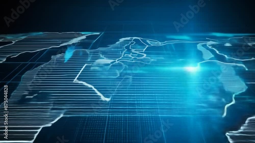 The watermark will not be included on Wall mural.: 3d animation of digital world map with colorful network connections