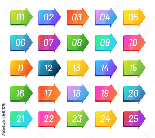 Wall mural : 3d arrow number bullet points from 1 to 25 -