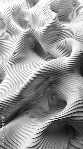 3d background of a white abstract object with wavy lines on a black background, reminiscent of paperWall mural