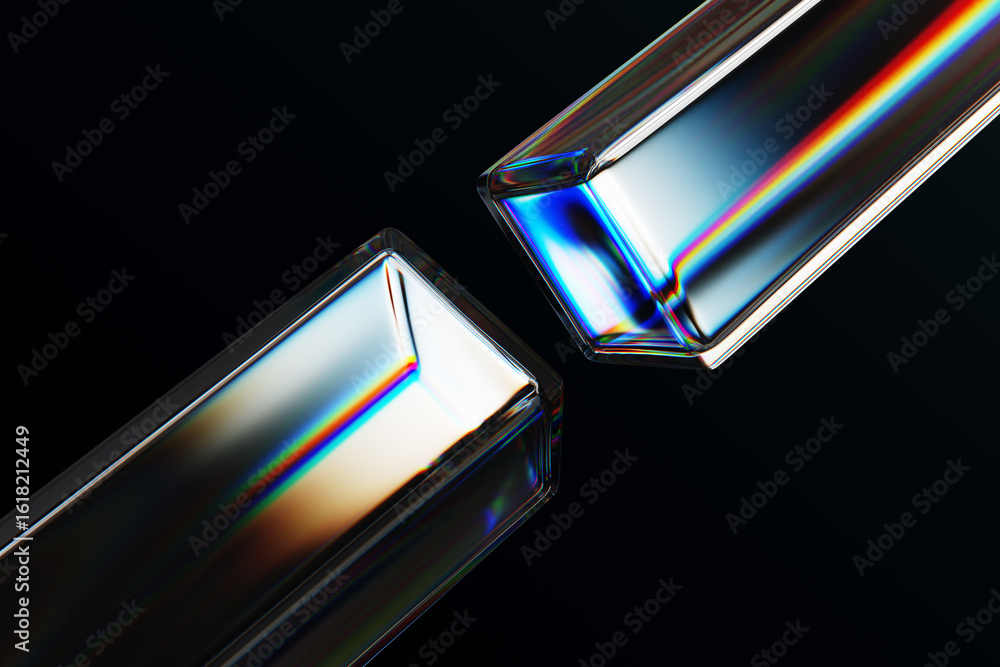 3d black background with glass chromatic cube block shapes render - abstract crystal diagonal line paWall mural