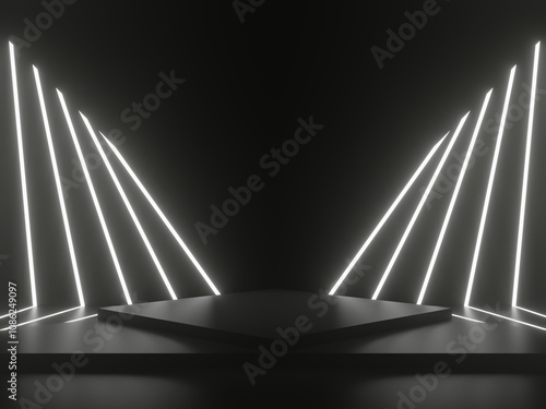The watermark will not be included on Wall mural.: 3d black podium with white neon lights