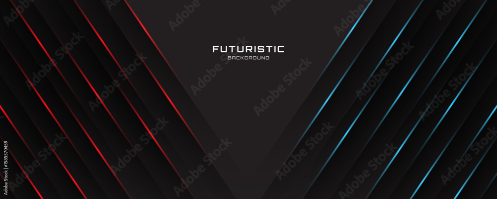 The watermark will not be included on Wall mural.: 3d black techno abstract background overlap layer on dark space with red blue lights effect decorati
