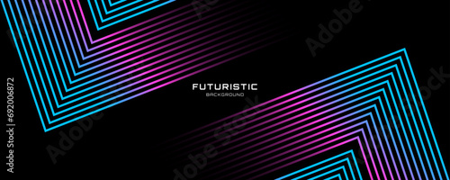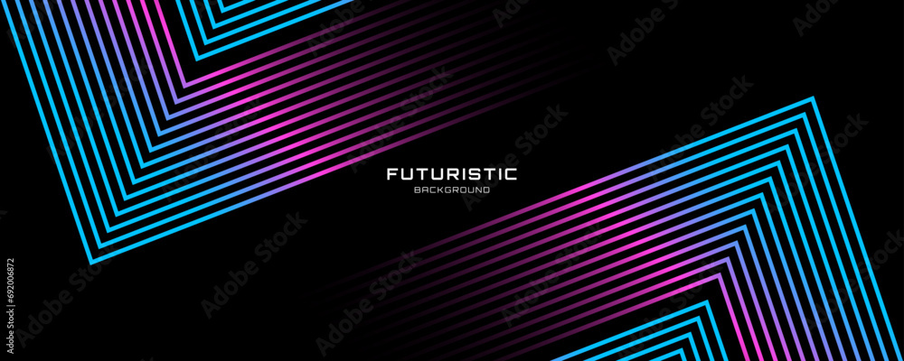 Wall mural : 3d blue pink techno abstract background overlap layer on dark space with glowing lines shape decorat