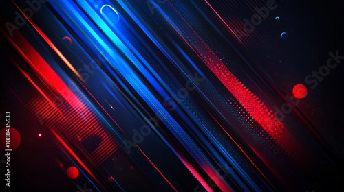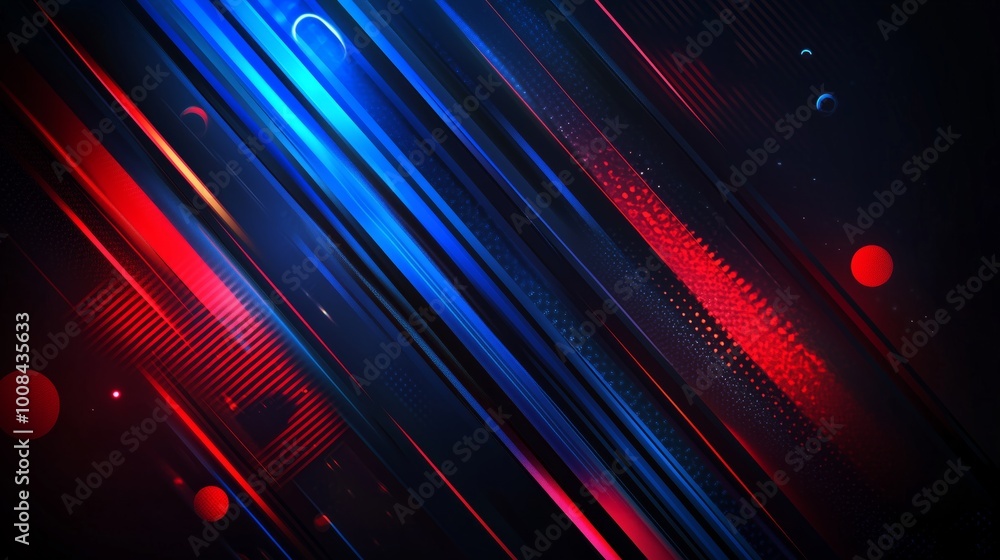 The watermark will not be included on Wall mural.: 3d blue red techno abstract background overlap layer on dark space with circle stripes shape decorat