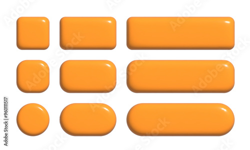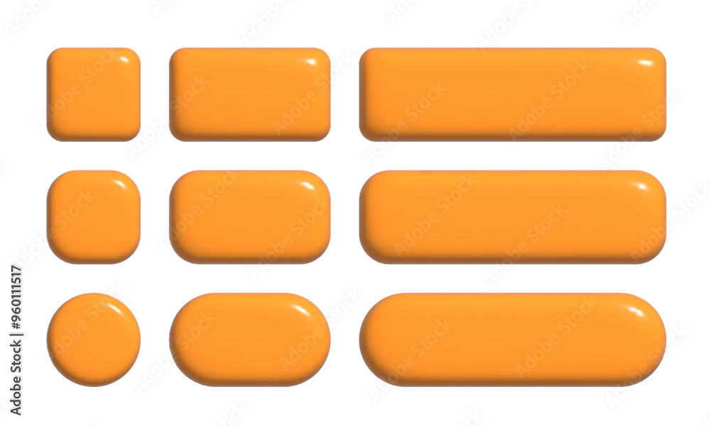 Wall mural 3d buttons collection for ui and ux design template. realistic glossy squared and rounded badges