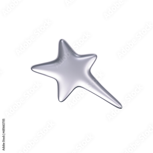 Wall mural 3d chrome falling or flying star in y2k futuristic style isolated on white background. render 3d sil