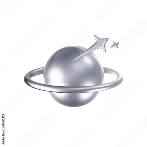 Wall mural : 3d chrome galaxy planet icon with stars in y2k style isolated on white background - render of 3d silv