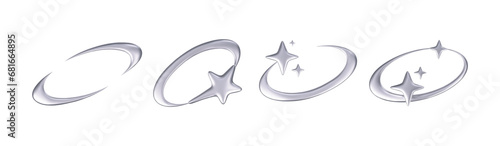 Wall mural 3d chrome stars set in y2k futuristic style isolated on dark background. render 3d cyber chrome gala