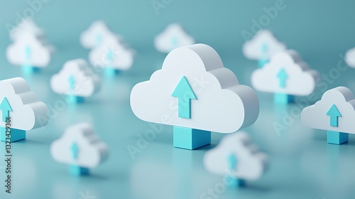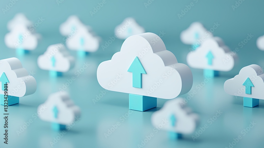Wall mural 3d cloud icon with upload arrow symbol representing data upload and online storage concept on soft b - Wall murals Wall mural 3d cloud icon with upload arrow symbol representing data upload and online storage concept on soft b - Wall murals