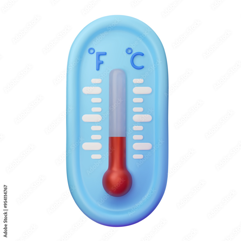The watermark will not be included on Wall mural.: 3d cold weather thermometer - isolated realistic vector illustration on white background